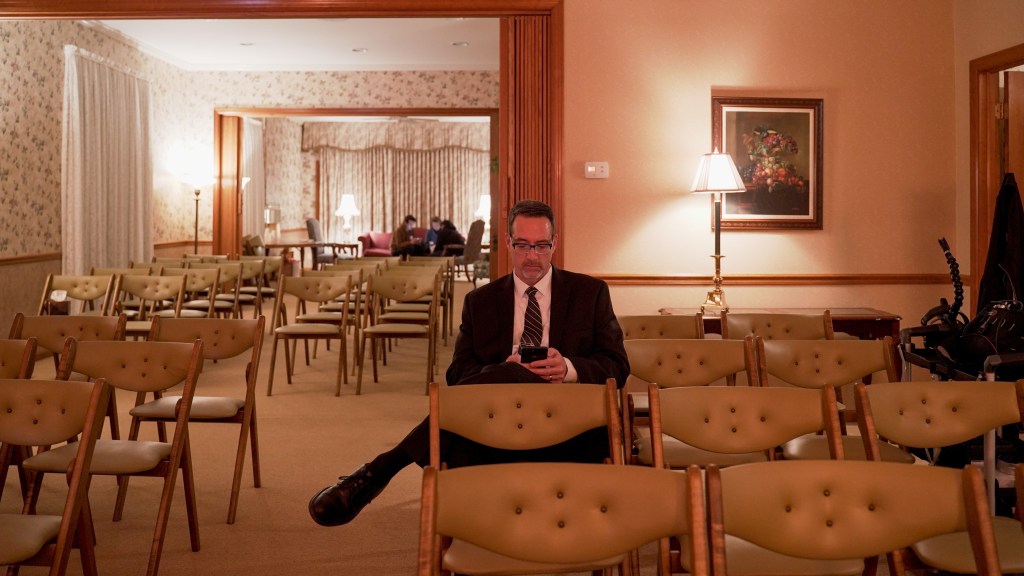 - When David enters the funeral home in a state of confusion, Julie tells him, “Actually… you’re a little early.”